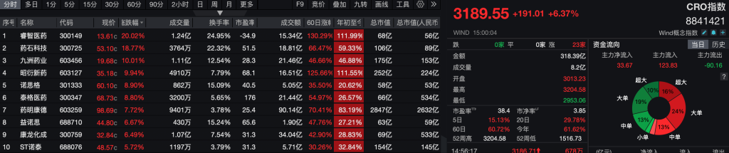 创新药板块周二全面爆发,CXO(医药外包服务)方向领涨。