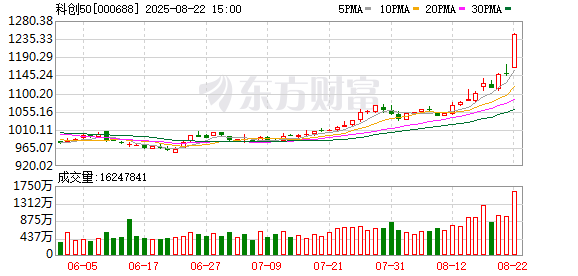 8月22日,科创板成了早盘爆点。科创50暴涨超5%,寒武纪盘中大涨14%,总市值超4800亿元。AI智能体概念盘中震荡拉升,昆仑万维涨超16%,海天瑞声、用友网络、延华智能、万兴科技、鼎捷数智等跟涨。AI产业链集体飙涨,科创AIETF亦一度大涨超5%。这是引爆市场的主力所在。